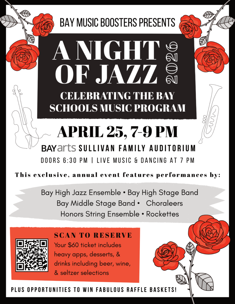 Bay Music Boosters is proud to present “A Night of Jazz”, featuring the Bay High Jazz Ensemble, Bay High Stage Band, Choraleers, Honors String Ensemble, BMS Stage Band, and Rockettes!